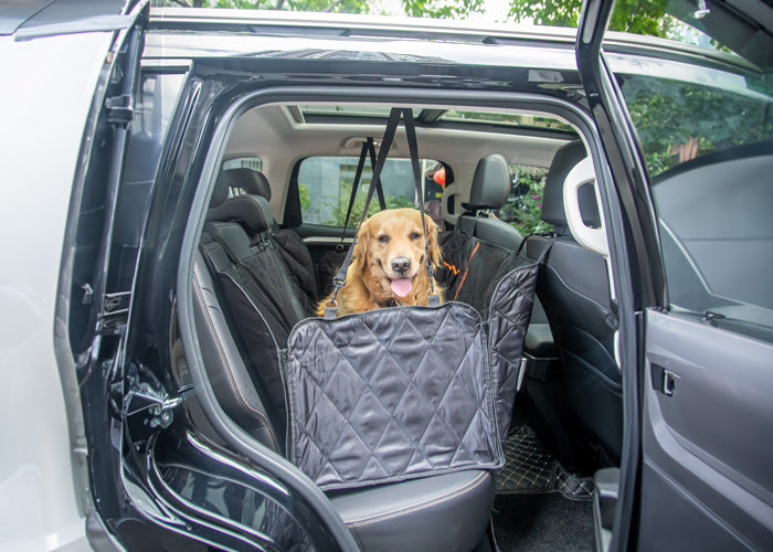 Our dog seat cover has nonslip rubber backing, 4-headrest straps, and 2 seat anchors to fix the back seat cover in place firmly. The seatbelt provided can protect your Dog from getting injured during sudden braking or accident.