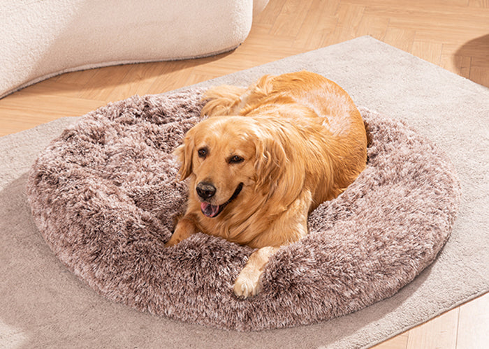 The round shape of our fluffy donut bed is perfect for pets who love to curl up. The raised rim creates a sense of security and head support, while the super soft filling offers relief from joint and muscle pain, promoting a restful sleep for your pets.
