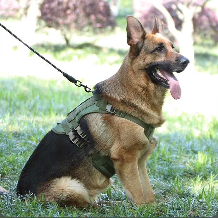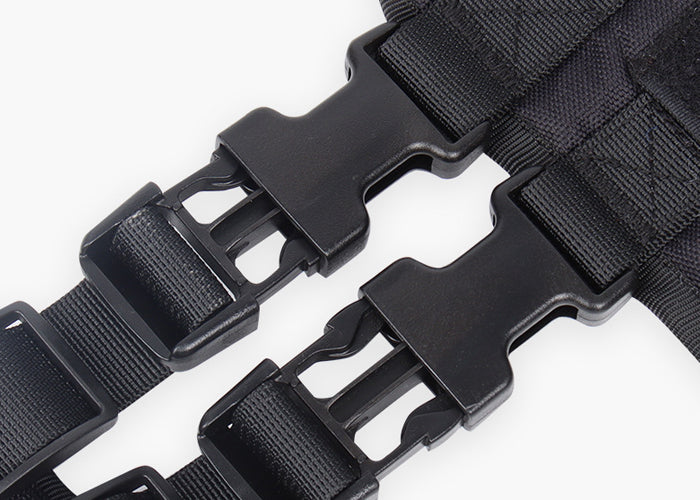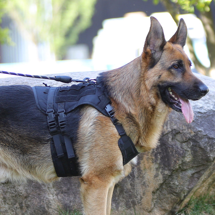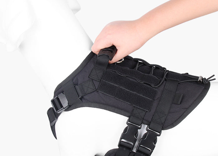 Our KEEPET Tactical Harness features a front D-ring and a unique no-pull design that discourages leash tugging. No more struggles during walks! This feature allows you to maintain better control while providing a comfortable experience for your pet. Crafted with your dog's comfort in mind, this harness is made from durable, lightweight material that stands up to heavy use without compromising your pet's comfort. Its ergonomic design ensures a perfect fit for any breed, promoting better mobility and reducing the risk of injuries.