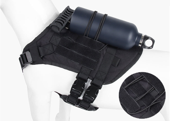 Adding to its practicality, the KEEPET Tactical No-Pull Dog Harness includes an expandable elastic strap on the back. This feature offers additional storage possibilities, allowing you to easily secure small items such as water bottles to the harness. Whether you're planning a long hike or a day out in the park, this harness ensures that your pet can carry their own essential supplies, making your adventures that much more enjoyable and convenient!