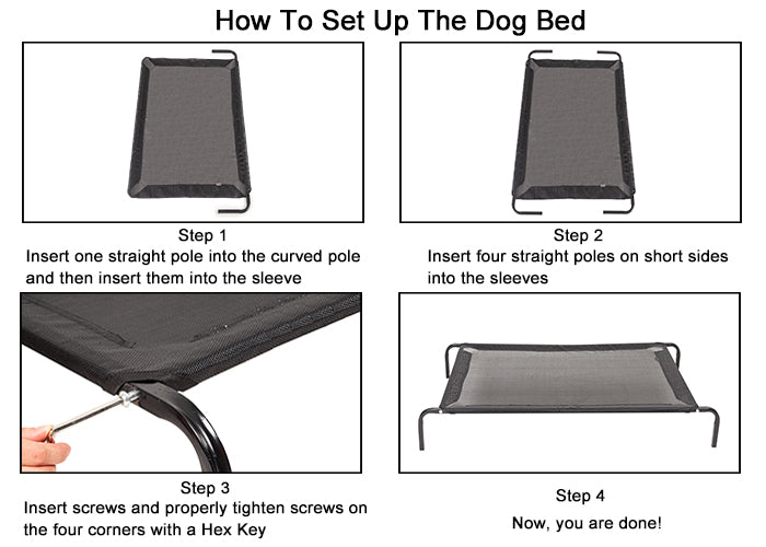 No tools are required! The durable raised dog bed can be easily assembled following the included installation guide. Complete the assembly in just a few minutes, and it's lightweight and portable for travel. Take this elevated dog bed wherever you go and watch your precious pet love you even more!